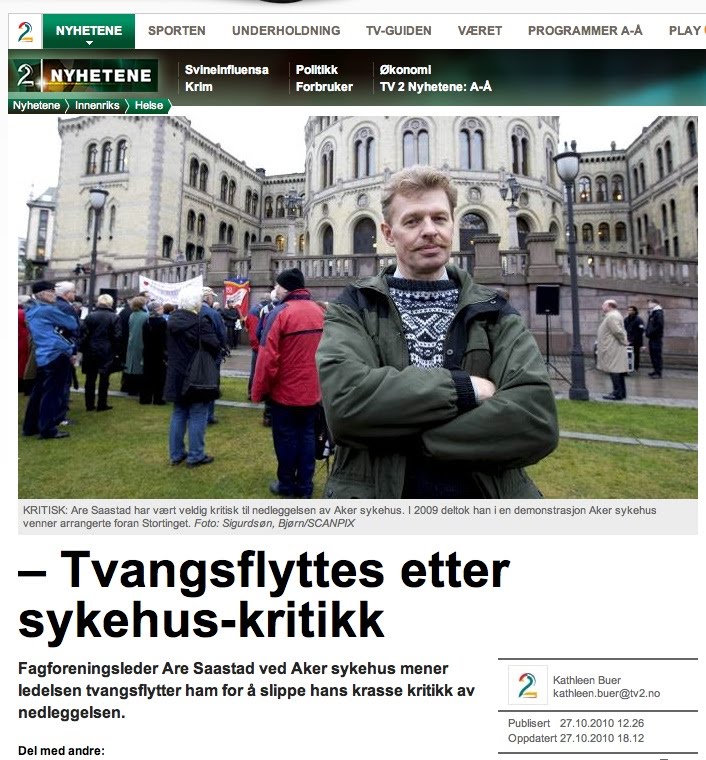 Aker sykehus var et sykehus i Europa-eliten på urologi, karkirurgi, hormonbehandling mv. og TV-overførte operasjoner til andre land. Det er pusset opp for 600 millioner helt nylig. Splitter nye avdelinger med topp utstyr står nå og støver ned. Aker hadde lavt sykefravær, lav turnover, få avvik. Aker gikk med overskudd. Når hørte du sist om et offentlig sykehus som gikk med overskudd?